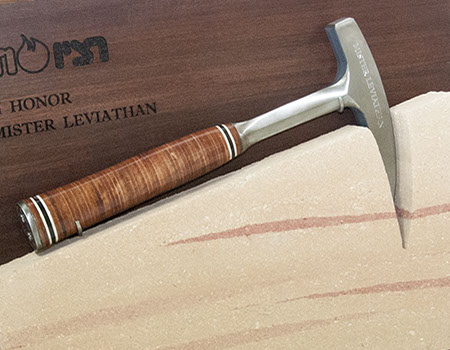 Razio Oil Exploration asked us to design a unique retirement present for their legendary chief geologist. We were asked to design a stand for a special gift rock hammer, engraved with a personal note. The client specifically requested an original, unique and respectable piece the recipient would proudly display.