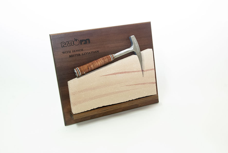 חברת רציו פנתה אלינו בבקשה לעצב מעמד למתנת פרידה מבכיר החברה שיצא לגמלאות. נדרשנו לעצב מעמד לפטיש גיאולוגים, עליו חרוטה הקדשה אישית לבכיר. הלקוחות ביקשו כי המעמד יהיה ייחודי, מקורי ומכובד - מוצר שיתגאה להציג בביתו.